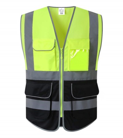 XIAKE 7 Pockets High Visibility Reflective Safety Vest for Men Women, Zipper Front, Yellow, Black Bottom - Yellow - Black Bottom/Small