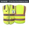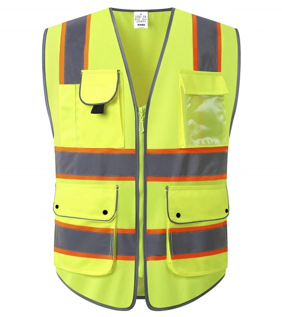 XIAKE 8 Pockets Class 2 Hi Vis Reflective Safety Vest with 2 Inch Dual Tone Reflective Strips - Yellow Orange Trim
